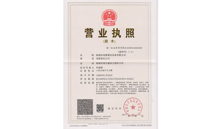 海城市鴻雁通信設(shè)備有限公司成立于1985年,位于海城市鞍海公路東側(cè),交通便利。注冊(cè)資金1000萬,占地面積17800平方米,職工120人,年產(chǎn)值600多萬。法人代表畢盛春,曾多次獲得“中國(guó)誠(chéng)信企業(yè)家”稱號(hào)。